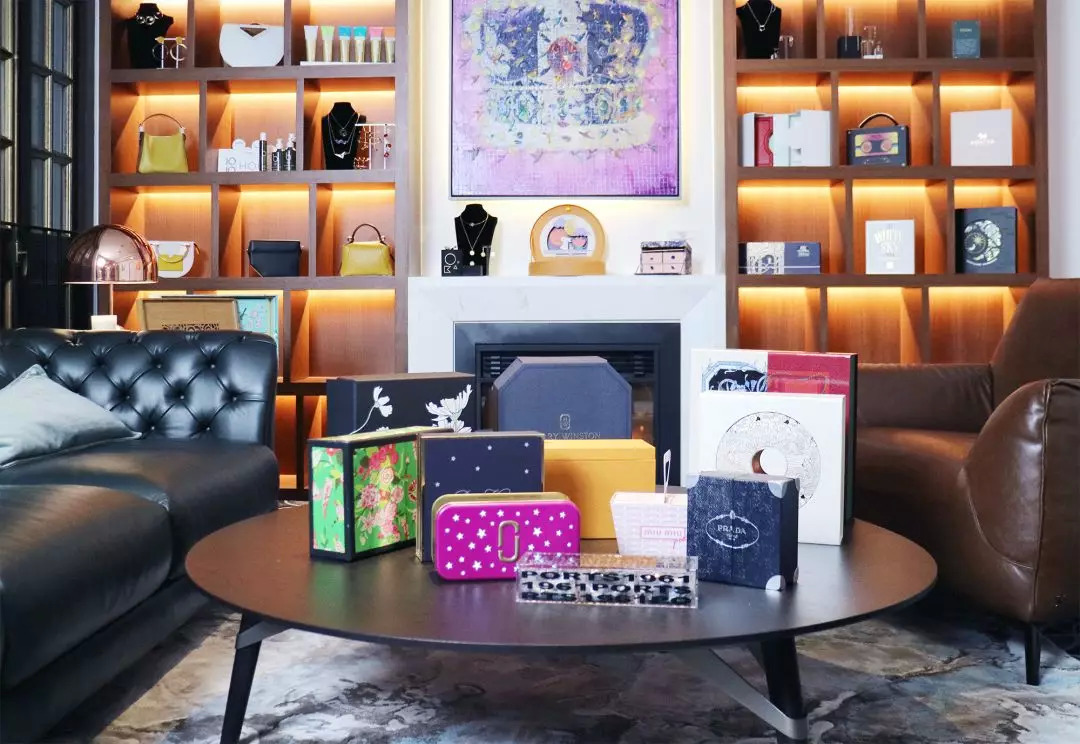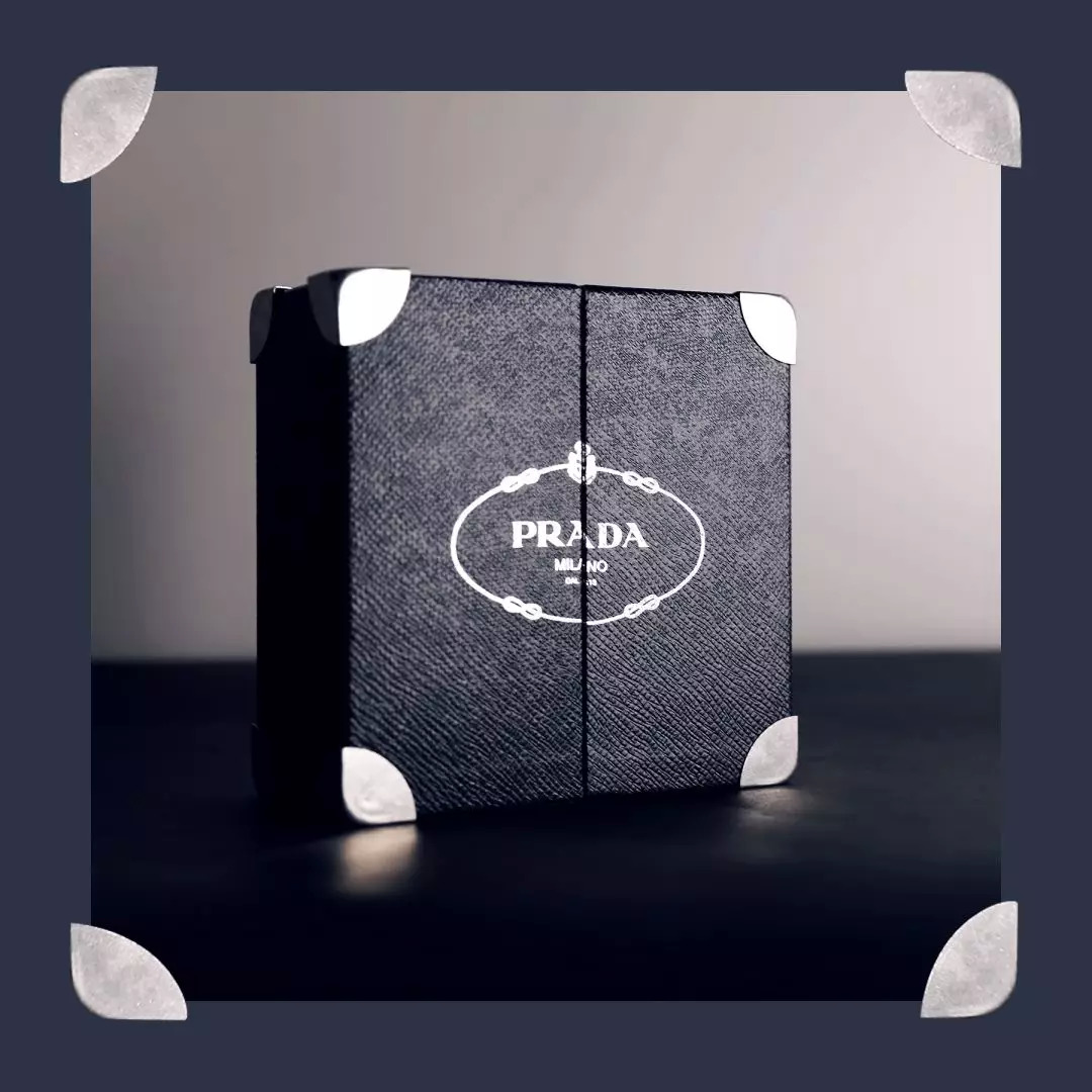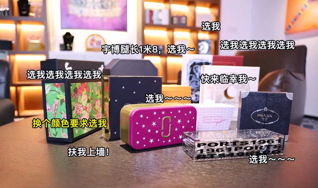 扁扁的长盒印满了黑色Logo,可以拿来装首饰口红之类的。男助理一直求我藏起来,但是它已落入她人怀中。
