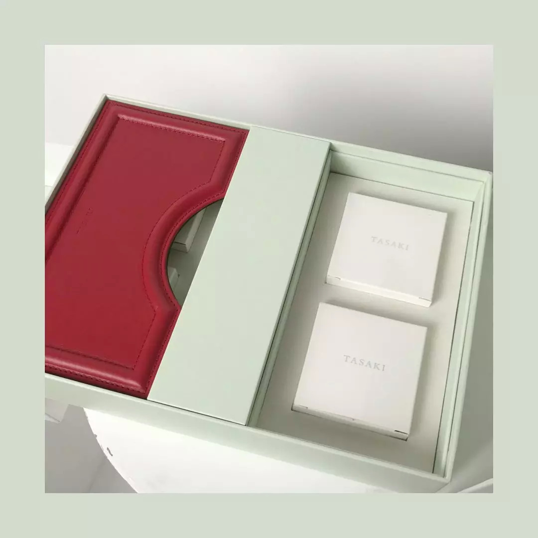 Tasaki外壳看起来像是一个珠宝首饰盒,打开里面有大红色的皮,我们研究了很久它的作用,