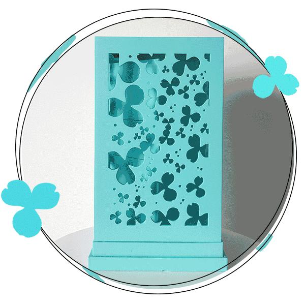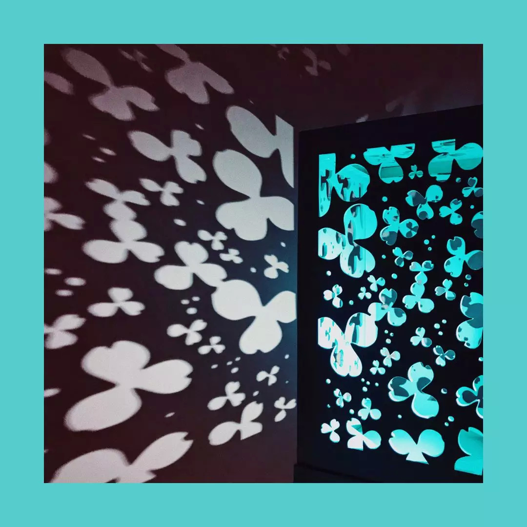 灯罩是镂空的,形状是今年新品的Paper Flower,打开开关后,是可以印得满墙都是浪漫图案的暖暖黄光。