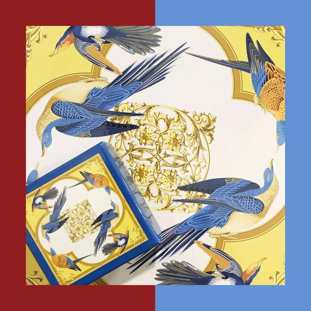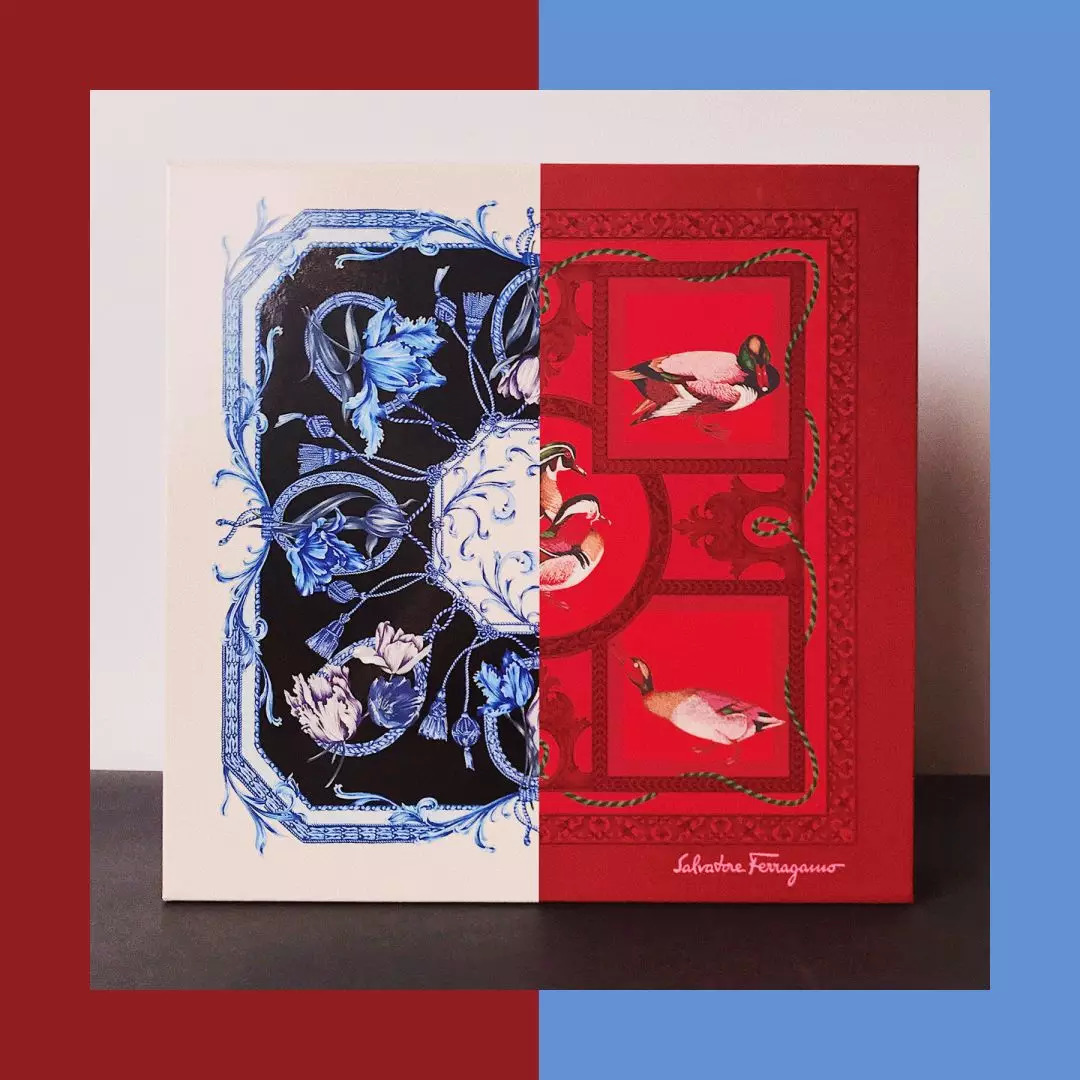 Ferragamo今年的包装图案变浮夸很多,外面是红白各一半的两种花纹,有种两个皇室家族对垒的感觉(戏很多)。