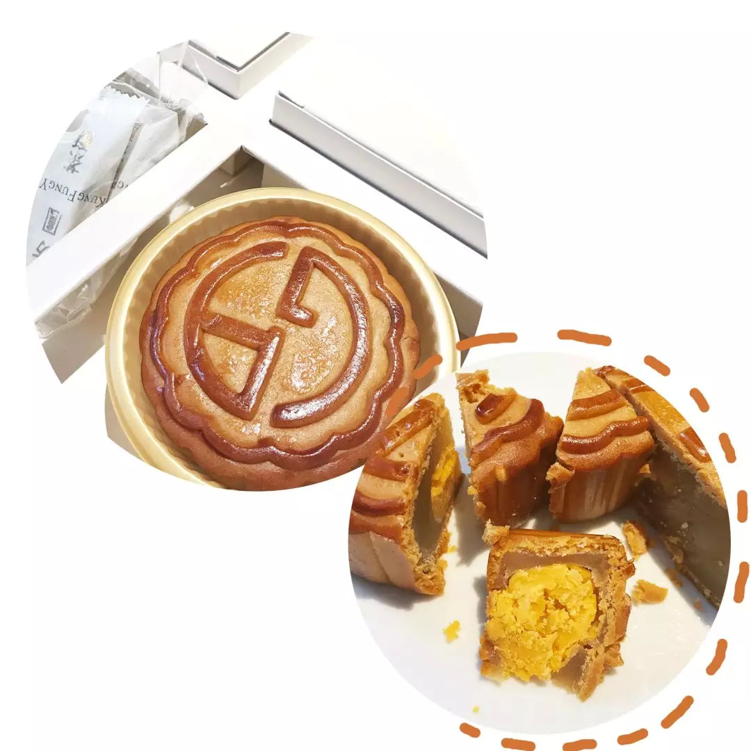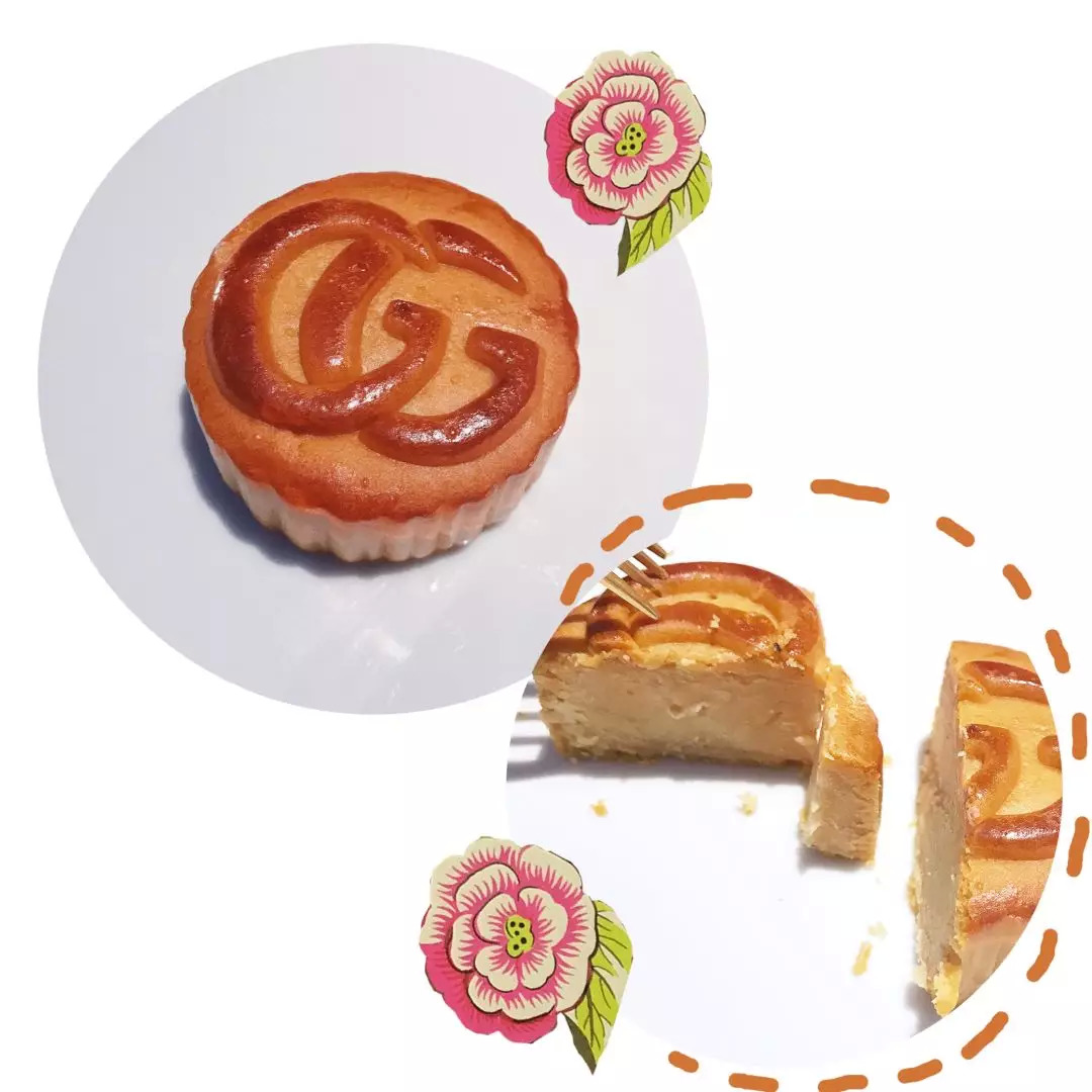 月饼扎实到差点切不下去,印着双G Logo,干脆串起来当皮带用蛮好的。我们吃了个柠霜酥酪, 没想到吃出了陈皮的古早味,并且甜到有点倒牙。