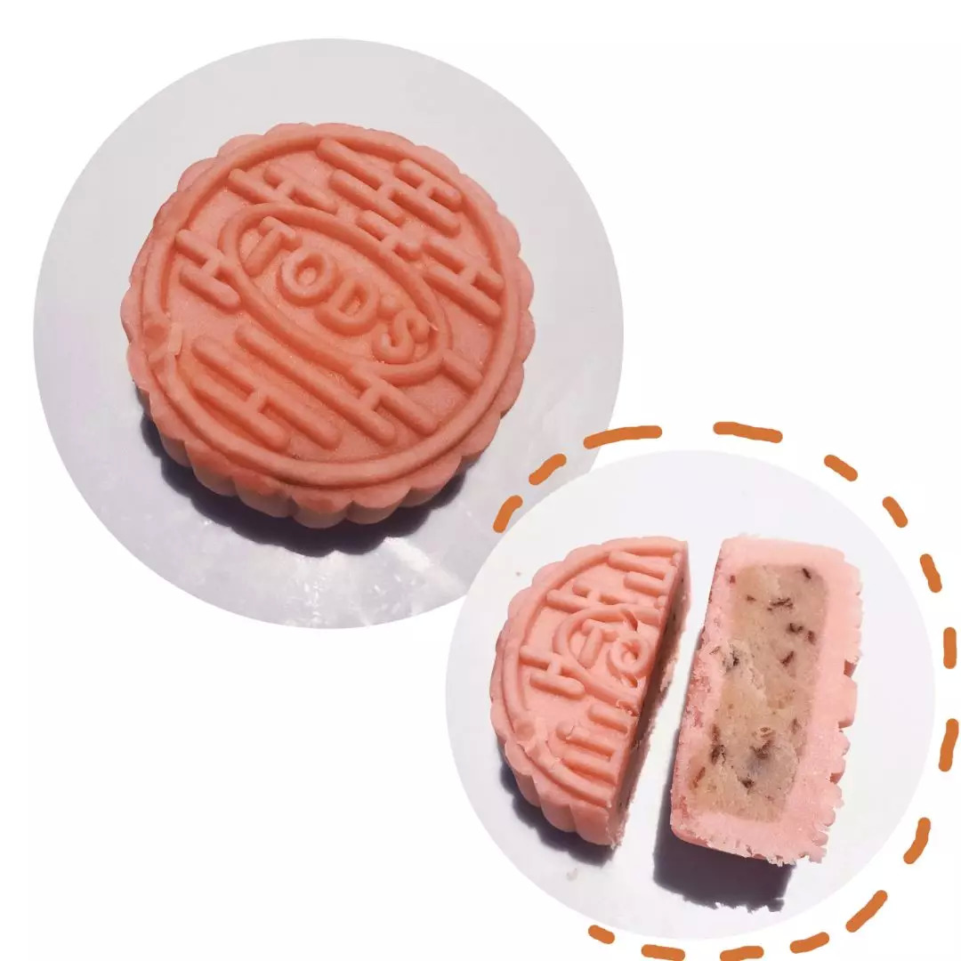 月饼有四个口味,红豆酸奶、红酒蔓越莓、蛋黄莲蓉和芝麻流心。我们试了呼声最高的红豆酸奶。