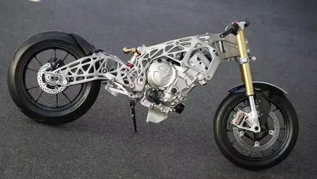 除了自动驾驶技术本身,这款摩托车的设计也十分亮眼。车身和后摆臂等主要部位都是通过3D打印技术制作而成,而底盘部件则是由轻质高强度的碳纤维材料制作而成。提升了车辆性能之余,整体造型透出一种硬核未来感,让人移不开眼。