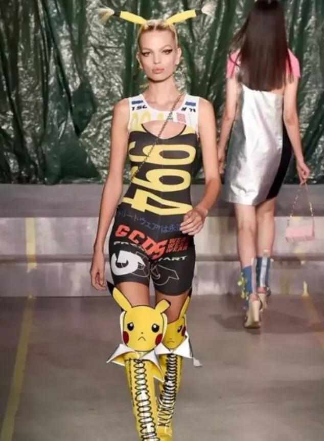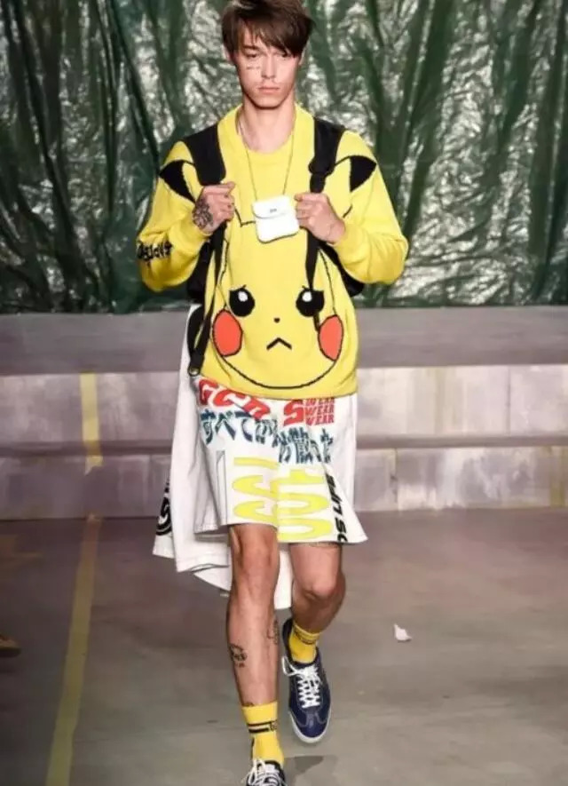 今年的米兰时装周上,GCDS的模特们全身都是皮卡丘经典的黄黑配色,头顶皮卡丘天线,身穿皮卡丘大脸,脚上踏着皮卡丘长筒袜,让人看了就忍不住想说:去吧!皮卡丘!