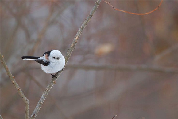 跟生活在日本其他地区的长尾山雀不一样,这种山雀整张脸都是白色的。看它歪着脑袋一脸无辜的样子,心都被萌化了。