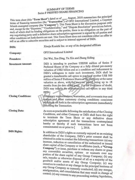 值得关注的是,在这份投资意向书中,滴滴提出新董事会将由5名成员组成,其中2名成员由滴滴任命,1名成员由所有创始人共同任命,2名成员由滴滴以外的其他投资者任命。包括CEO等在内的所有关键岗位必须由滴滴提名、任命、替换或解雇。