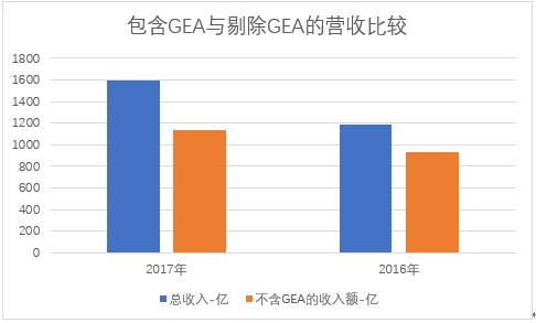 2017年青岛海尔总营收1600亿元(剔除GEA,1100亿元)。如下图: