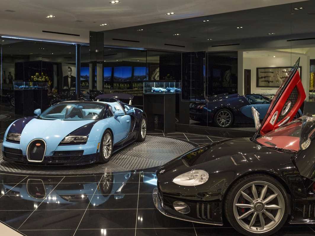 这栋豪宅是为超跑爱好者所建的。车库中的液压升降台可以把车辆运送到楼下的展览厅,而在展览厅中,一个由玻璃包围的旋转展台能360度全方位地向来宾炫耀房主的爱车。