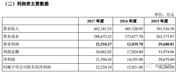招股书对新希望乳业2015~2017年度的业绩进行了披露,营业收入分别为39.15亿元、40.53亿元和44.22亿元;