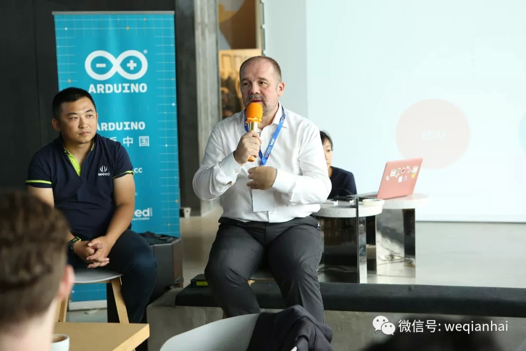 马西莫·班兹介绍,中国的创客们以Arduino为原型或基础研发出了非常棒的创客项目,包括物联网、机器人、无人机、智能家居控制、3D打印等等。而基于 Arduino开发板及引申的产业,例如创客教育、各种兼容的电子模块,服务全球创客们从 Arduino 原型到批量生产等业务。