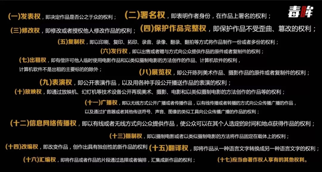 郑厚哲告诉毒眸:“著作权实际上是民事权,和个人的财产权一样,主要靠合同和协议来生效,没有行政流程规定授权的具体方式,行政并没有权利干预,实际上是自己的权利我自己说了算。”因此,获取版权的行为是一种授权,而非买卖。