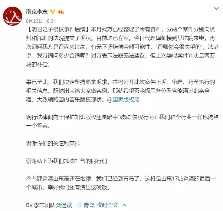 对于这些原创音乐人来说,最简单的道歉一般也都得不到,可见音乐维权是多么的艰难。