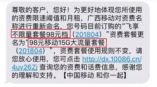 而最近几天这条工信部的整改意见开始落实了。相信一部分的移动用户已经收移动公司发给大家的套餐更名提醒。
