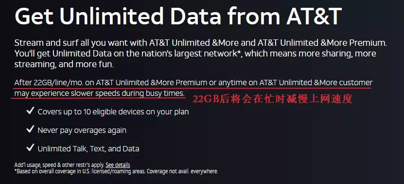 美国 AT&T 的无线套餐也会减慢上网速度