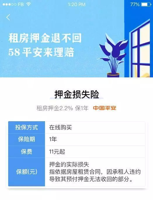 为解决用户痛点,押金保险在国内刚刚起步。今年4月,58同城联手保险公司推出租房押金损失险,提供1年保障服务,租房用户一次性支付押金的2.2%(最低11元起),在1年的保期内,58同城将为全额押金提供保障。