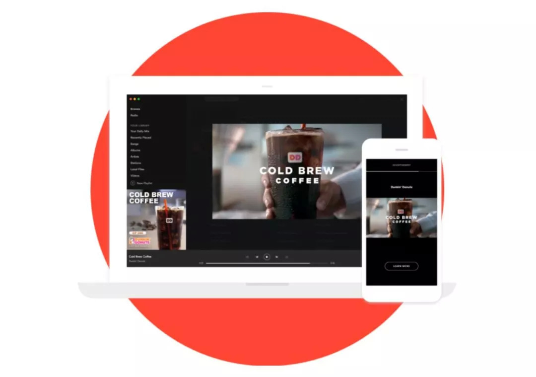 Spotify会向用户播放音频广告,它一般出现在歌曲与歌曲的间隔,约15分钟播放一次,时长30秒。这类广告可以根据用户的使用习惯和喜好进行个性化的推荐。