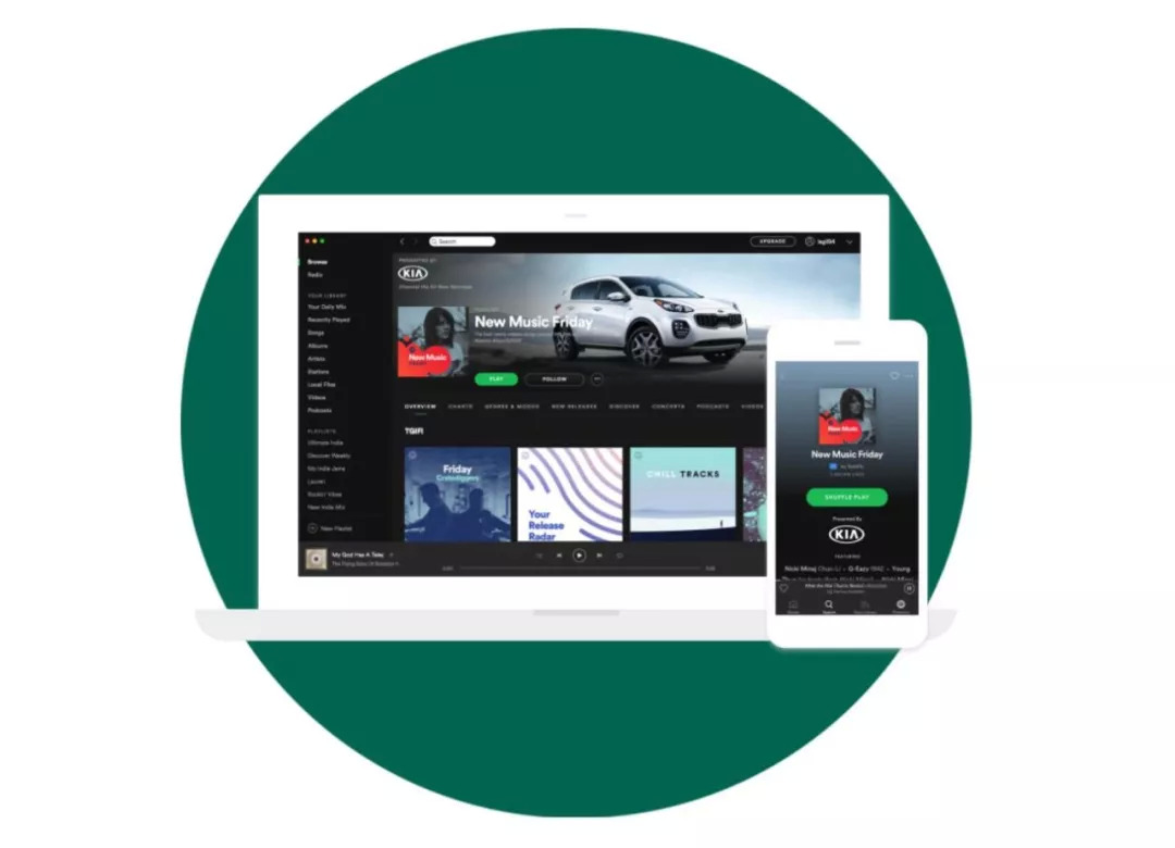 Spotify较为独特的网页广告形式是允许广告商赞助和运营播放列表,不同类型和行业的广告商可以根据自己的行业赞助和运营符合自己品牌调性的播放列表,吸引与自己品牌高度相关的用户,从而让广告效果最大化。例如球鞋和运动饮料赞助节奏强烈的说唱音乐播放列表,潮牌服装赞助摇滚音乐播放列表,汽车品牌赞助适合旅行时听的播放列表等。