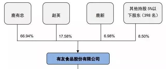 10月10日,有友食品IPO上会。其招股书透露,有友食品的实控人是鹿有忠、赵英夫妇,两人合计持有公司84.52%的股权,再加上其女鹿新持有的股份,这一家三口共持有公司91.51%的股权,拥有绝对话语权。