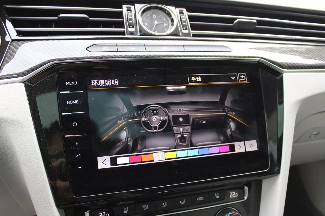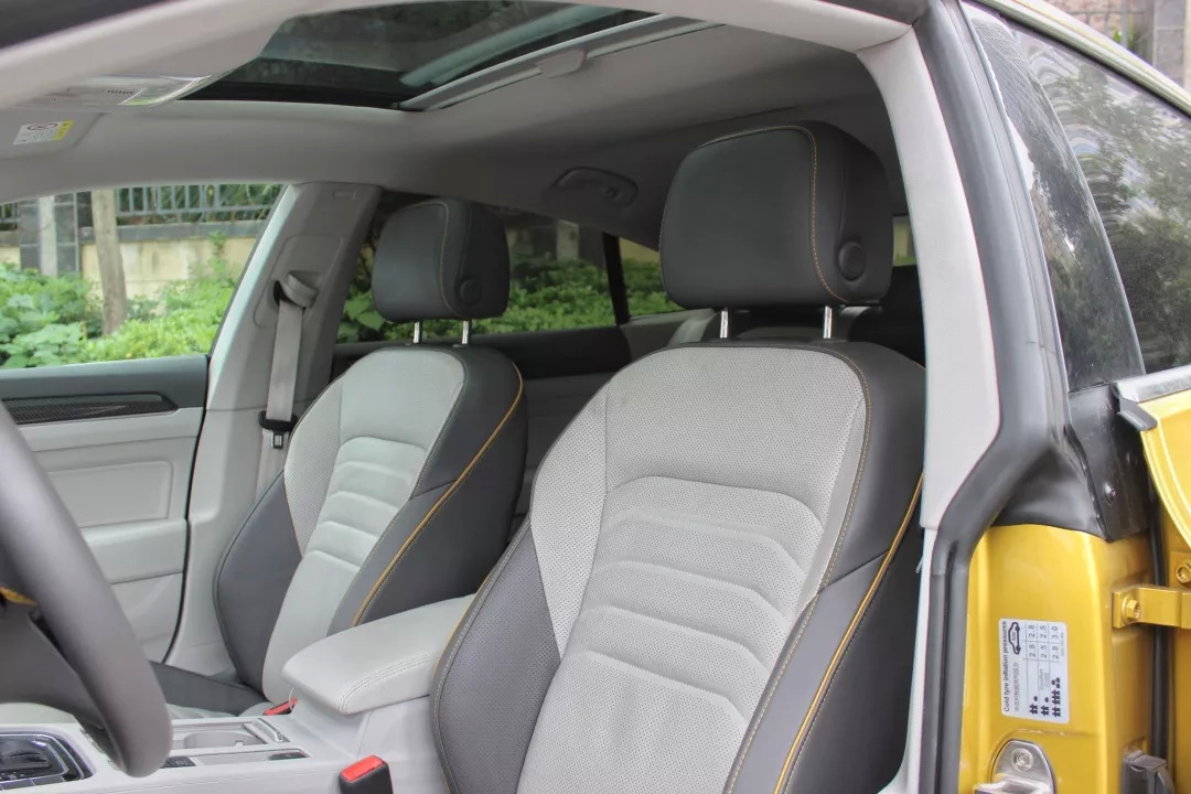 新CC的座椅相比以前也更为舒适,不是那种冷冰冰硬邦邦让人近而远之的感觉了。同样舒适的还有内饰氛围,顶棚的灯光柔和而高雅,当然这点在高配车型上更加突出,通过不同色彩搭配的氛围灯很好玩,在调节的时候连同仪表板的背景色也能同步变幻,而且灯光亮度还能够分区域单独调节,可以在夜晚开车的时候把上半部分调暗不影响驾驶安全,同时又保持下半部分的明亮营造氛围。