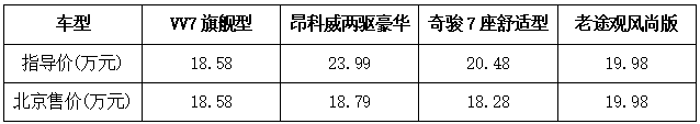 在价格方面,VV7旗舰车型价格18.58万元,而昂科威20T两驱豪华型和奇骏2.0L CVT7座舒适版前驱车在北京地区优惠后的终端价格分别18.79万元和18.28万元,不过如此价格也需要置换或含装饰加起来的合计优惠,毕竟分别降价了5.2万元和2.2万元也不少。此外,老途观优惠也不少,而途观L缺少优惠,低配车型指导价也低至20万元以内了。
