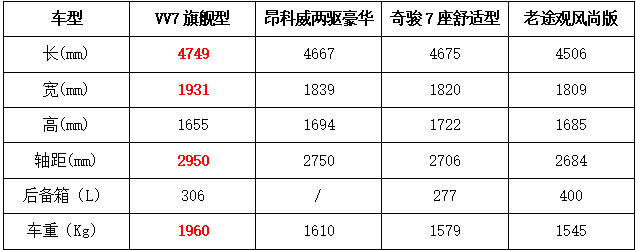 配置:VV7>奇骏>昂科威>老途观