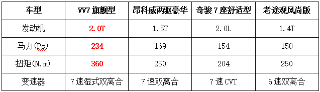 动力总成:VV7>昂科威>奇骏>老途观