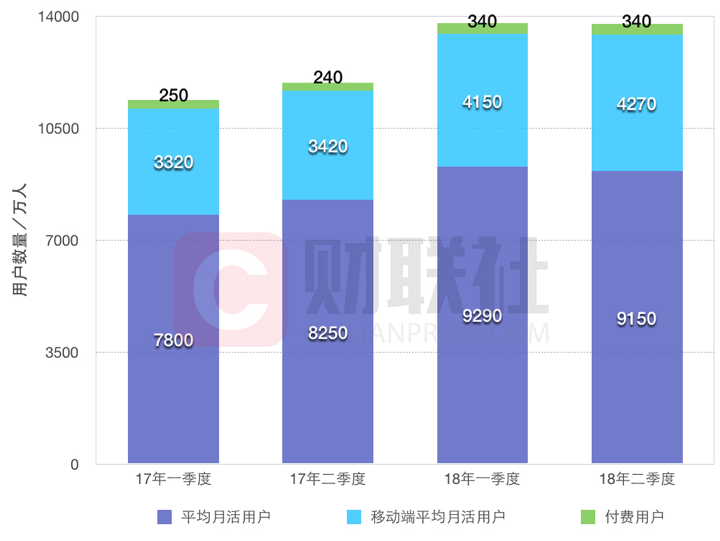 运营费用的增长,并没有带来用户的增长。财联社记者研究发现,虎牙直播今年一季度平均月活用户9290万人,但二季度降至9150万人;移动端用户人数有所增长,二季度比一季度增加了120万,为4270万;付费用户人数依旧保持在340万。