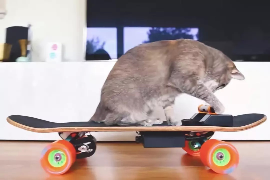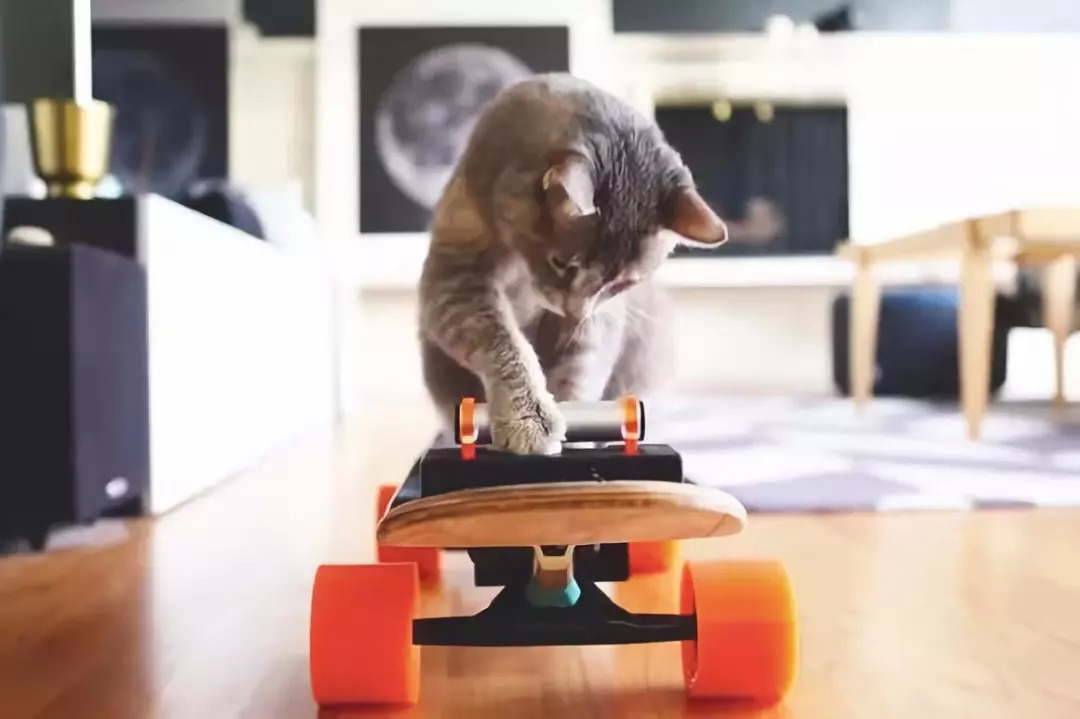 全世界有无数的猫奴,他们已经被猫主子征服愿意做任何事情,设计师Kim Pimmel就为自己的主子设计了定制电动滑板,猫主子可以和自己一样,享受到自由穿梭的乐趣。