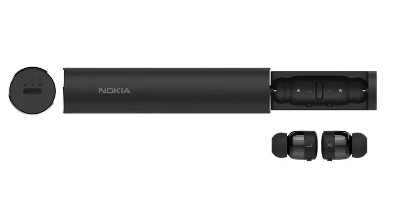 Nokia True Wireless Earbuds并没有模仿AirPods的大众化方案,而是把两个黑色耳机放进了4英寸的充电管中,打开方式不是开合式,而是推拉式。