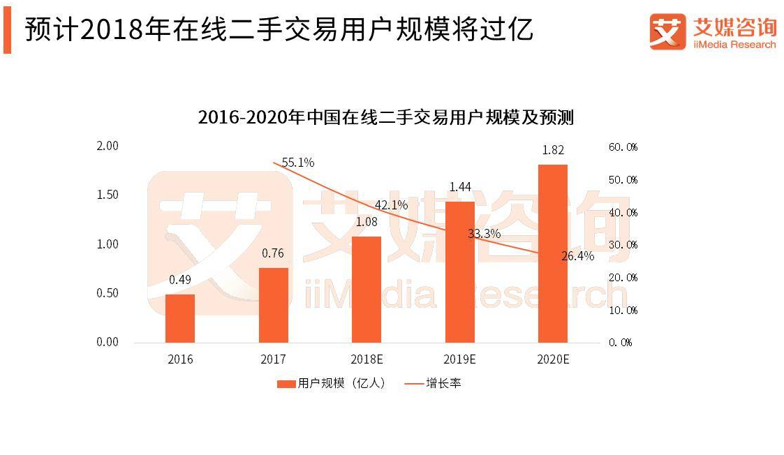 中国的二手市场并非不火爆,根据iiMedia Research最新数据显示,2017年中国在线二手交易用户规模达0.76亿人,增长率达55.1%,预计2018年用户规模将超过1亿人,增长势头将持续强劲。