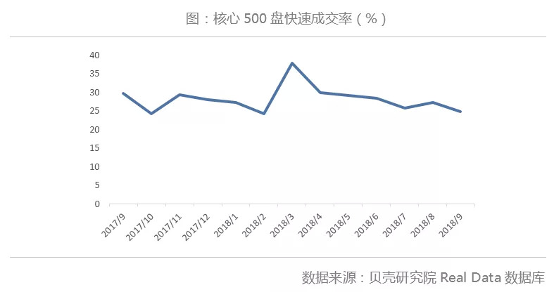 9.核心500盘快速成交率=在每个自然月所成交的二手住宅物业中业主成交周期小于14天的成交物业数量/ 当月样本楼盘的总成交量 *100%