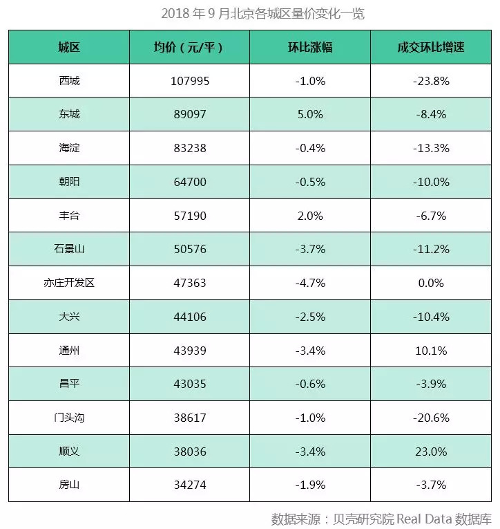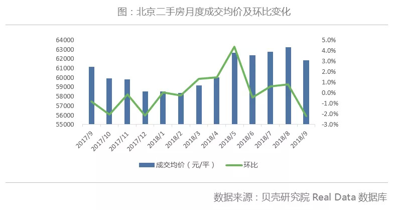贝壳研究院Real Data数据显示,2018年9月北京二手房市场继续降温,成交量延续下滑态势,均价受成交结构影响明显下跌,市场成交节奏继续放缓。