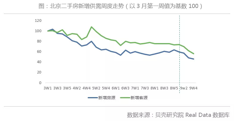 贝壳研究院首席市场分析师许小乐认为,9月北京二手房市场实时成交量环比减少8.6%,成交绝对水平不及5月峰值的一半,当前市场预期进一步向下,新增供需低迷,房贷成本提高,后市难有起色。