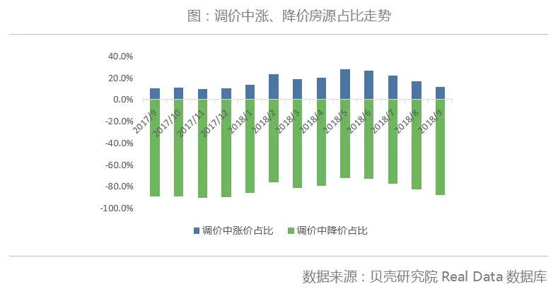 2.调价房源中涨价占比=一段时间内挂牌价格上调的房源数量/一段时间内所有进行调价的房源数量