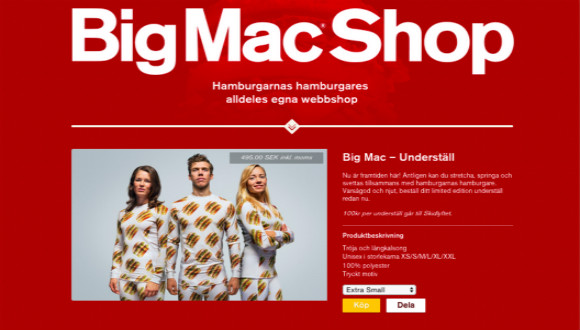 关心在哪儿才能买到吗?还真的可以买。麦当劳专门开了网站bigmacshop.se,出售这些巨无霸印花的单品,而且价格和麦当劳的食物一样很平易近人。比如,床单的价格为399瑞典克朗(约合288元人民币),秋衣和秋裤套装的价格为495瑞典克朗(约合358元人民币)。