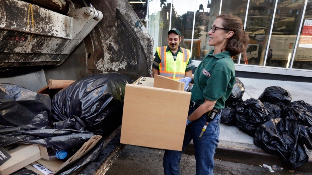 当处理垃圾篮时,朱斯提克不仅仅将篮子里的东西投进垃圾车然后开走,而是审视一下垃圾,比如似乎总是弹到人行道上的压瘪的披萨盒子,以及那些像在雨中遭殃的艺术品一般散落在路边的皱巴巴的伞。