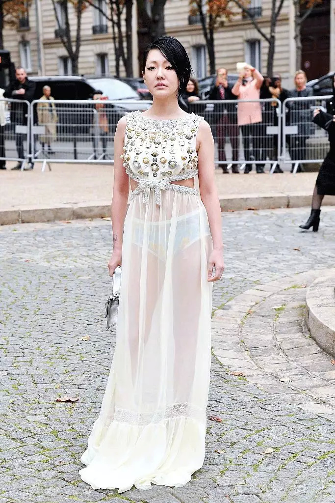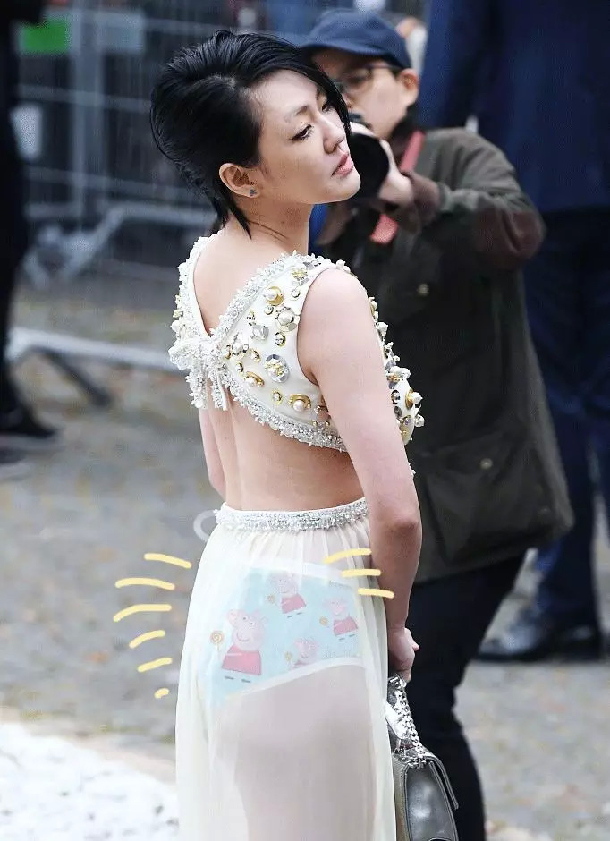 她向来新颖有趣,这次也不例外。穿着透明的睡衣和奶奶的花内裤去看秀。