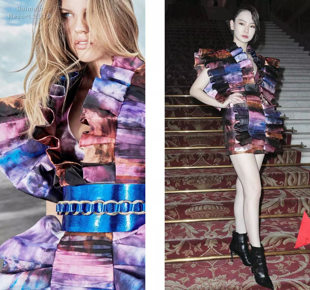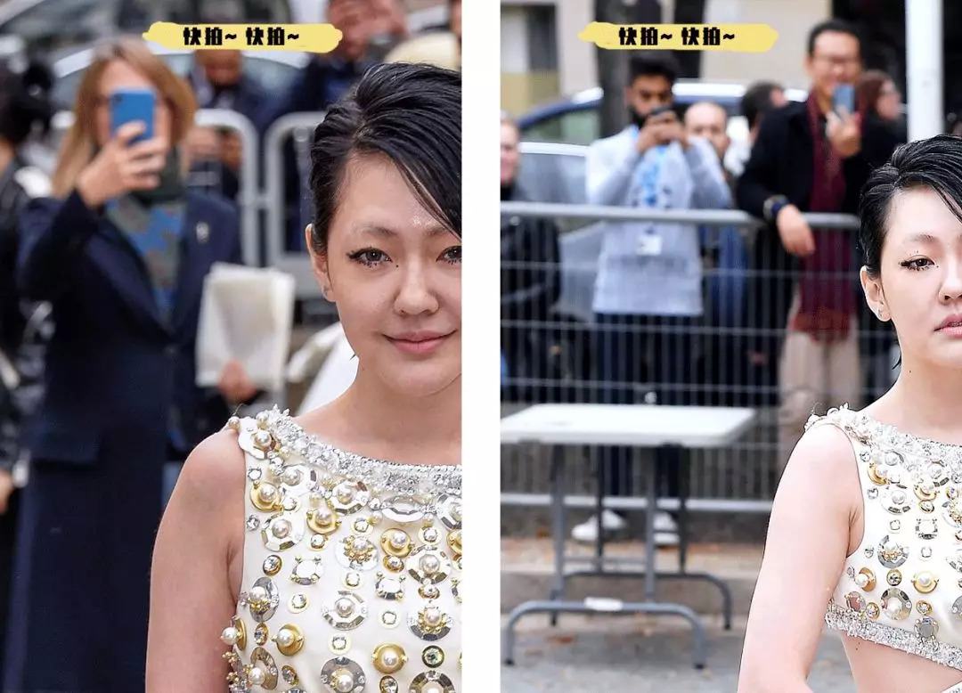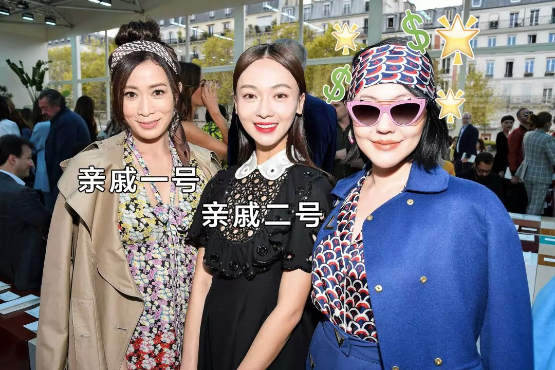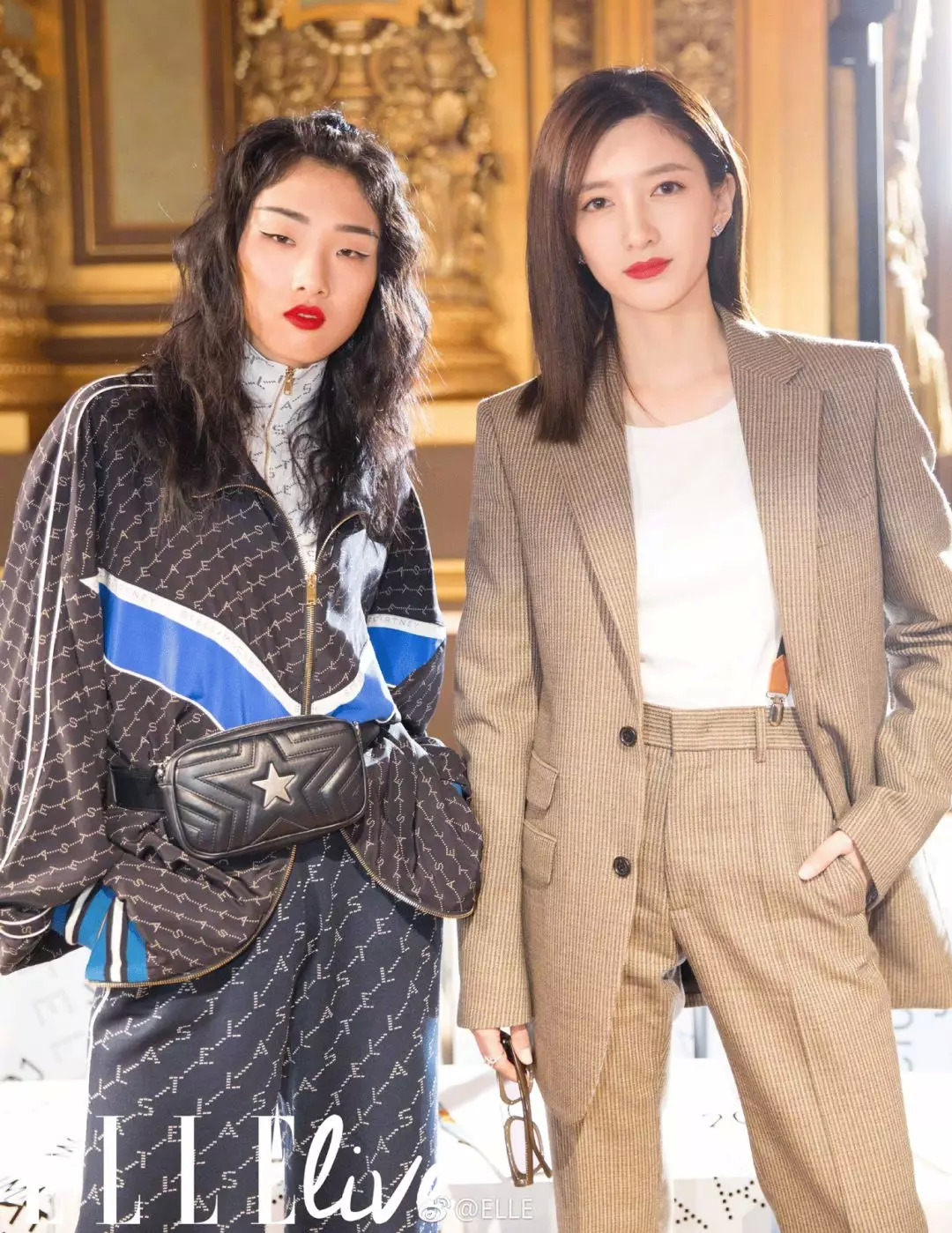 她和江疏影的合影,遮住左边,嗯,时装周;遮住右边,呃,马戏团。