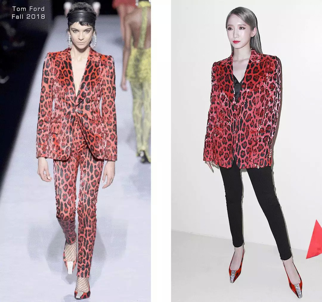 孟美岐穿着中老年秋冬三件套——豹纹、紧腿裤,差双长筒靴就齐活儿了。