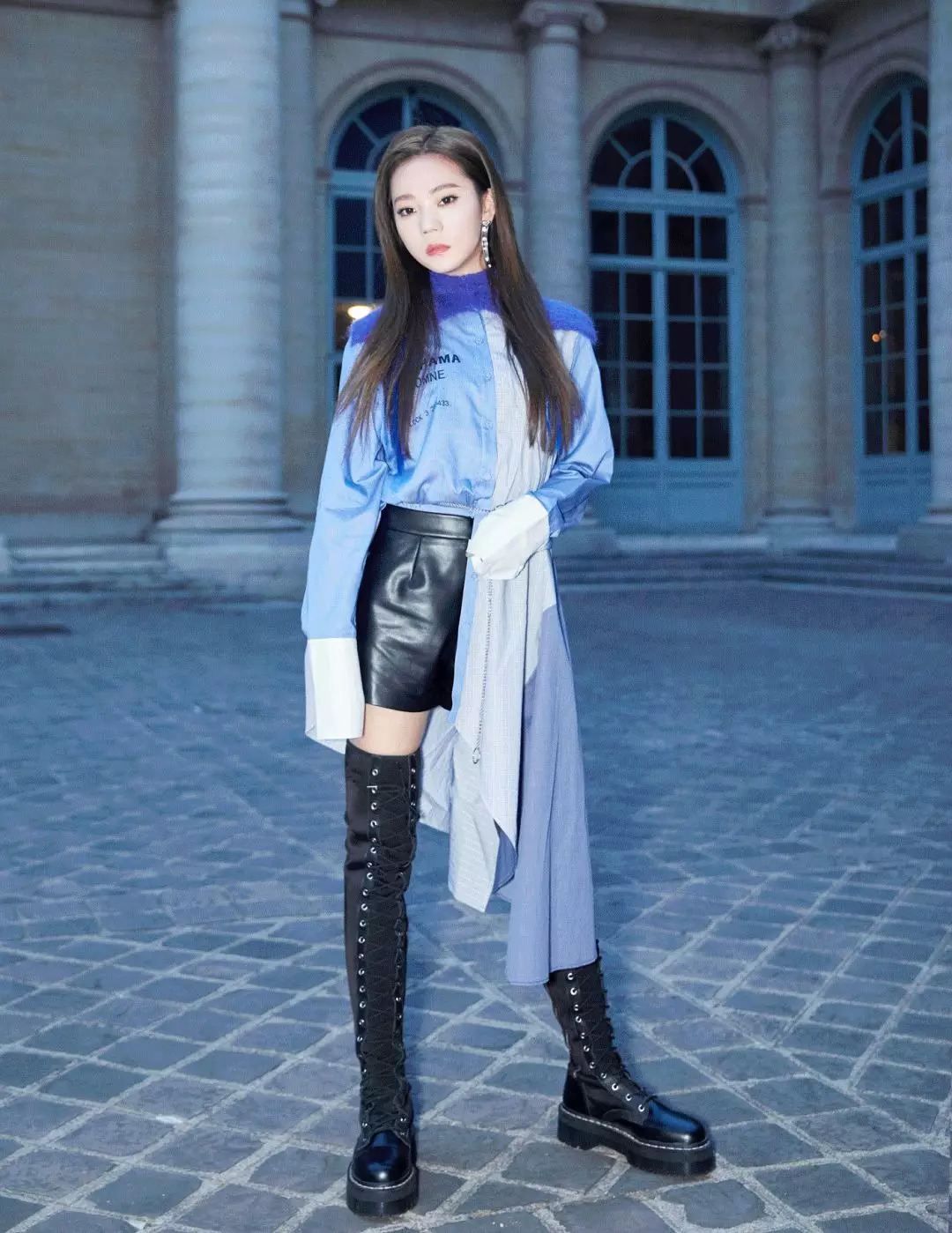 这稀里哗啦的上衣和皮裤长靴的搭配,极具创意和胆识,值得每位城乡结合部女青年学习借鉴。