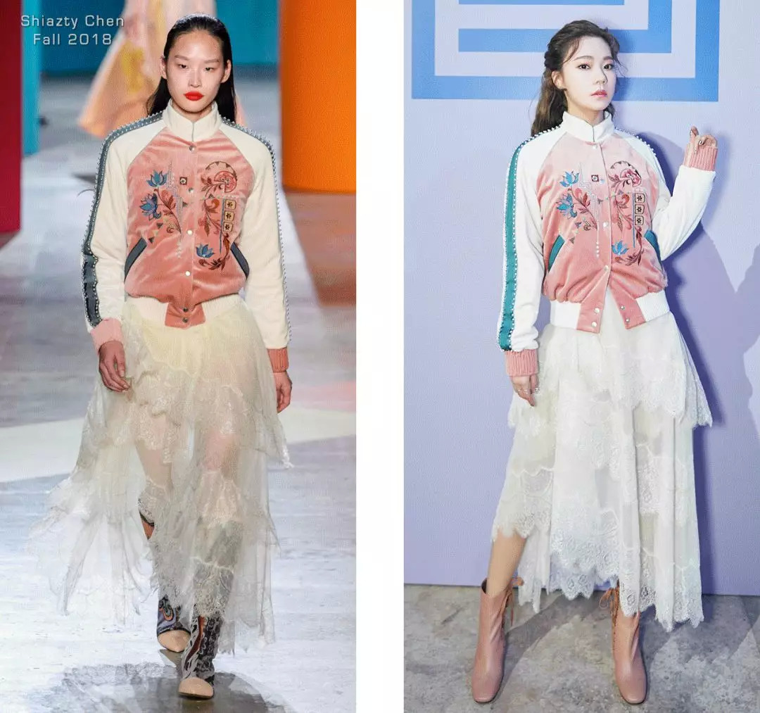 刺绣横须贺夹克配蕾丝裙,做到了过气、老气和土气的三合一。