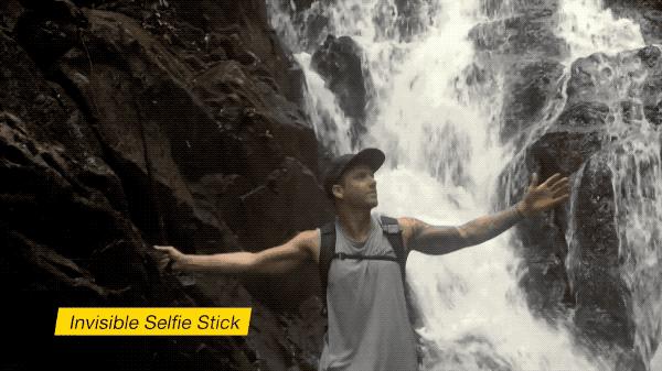 更重要的是,拍照时它还能将自拍杆直接隐形,就像是用无人机视角自拍一样,看起来就很贵。