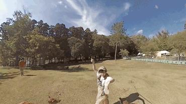 玩法很简单:将相机用鱼线或者自拍杆系好,然后绕着头顶甩上几圈以后就能完成了。