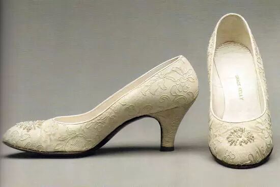 Grace的这双婚礼高跟鞋由纽约设计师David Evins设计完成,设计师特别在右鞋上镶嵌了铜币,象征着好运。为尽量不显得比新郎高太多,Grace特意选择了这款只有2 1/2英尺鞋跟的矮款。