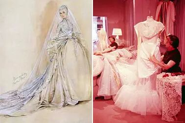 这套华美而简约的婚纱设计者是当时好莱坞米高梅公司的首席服装设计师,两次获得奥斯卡最佳服装设计的Helen Rose的作品,这套婚纱至今仍被奉为历史上最经典的婚纱款式,我们看到后来英王室威廉王子婚礼中凯特王妃的婚纱便是效仿这款设计。