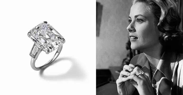 雷尼尔三世在最初向Grace求婚时,为女神带上的是一款特别定制的卡地亚红宝石钻戒。但后来,当他在美国看到那些阔绰的好莱坞女影星各个带着闪瞎狗眼的更大的钻戒的时候,亲王一咬牙一跺脚,立马定制了一颗10.47克拉的大钻戒。毕竟,自己的老婆可是影后级别啊!再怎么也不能逊过人家二流小明星吧~