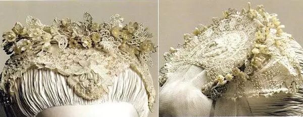 与一般王室婚礼的装束传统完全不同的是,Grace没有佩戴任何珠光宝气闪瞎狗眼的王冠,而选用了一款设计复古优雅的头纱。这款头纱将新鲜而含苞待放的淡橘色花骨朵点缀在一面展开有90码长的薄薄的纱巾上,这样人们透过纱巾可以清楚地看见王妃美丽的脸庞。