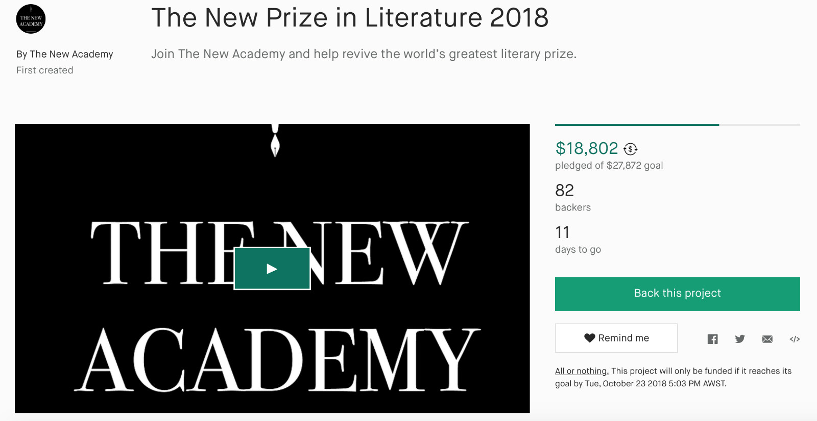 奖项的发起人帕斯卡里德女士是一位专栏作家和电视节目主持人。据外媒报道,她长达数月持续关注着瑞典文学院的性侵与腐败丑闻,并对奖项最终取消的结果感到愤怒。在一次电话采访中,她表示,“为什么作家要为这一团糟买单?”在瑞典一百多位文化人士的协助下,她创办了自己的“文学奖”。值得注意的是,这一奖项大部分资金的来源为Kickstarter(一个众筹网站)。据该网站显示,“新学院奖”的众筹开始于8月24日,目标是27,478美元,截至发稿时,已经有82人参与,众筹金额不足19,000美元。这个数目与真正的诺贝尔奖金(超出100万美元)有着不小的差距。