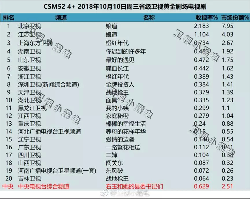 (卫视近期收视率,有且仅有三部在播热剧收视在0.5以上)