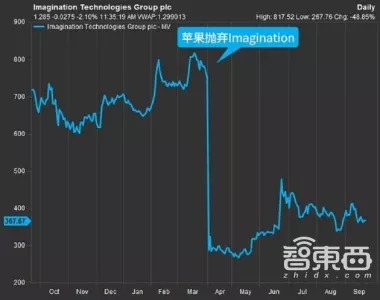 2017年4月初,苹果宣布弃用Imagination的技术,当天股市闻风大动,Imagination的股价下跌七成有余。